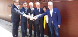 Los alcaldes de Calvià, Alfonso Rodríguez, y Pere Granados, de Salou destaparon ayer una placa conmemorativa que "certifica" la combinación de los dos municipios y que se ha instalado en la entrada de la capital de la Costa Dorada. La rotonda que une el Camino de Cavet y la calle Ciudad de Reus es el lugar elegido para mostrar el panel con el nombre de las dos ciudades, para mostrado esta "amistad".