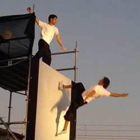 El Vendrell. Plaça Pep Jai. Teatre. 18hs Collage Autor: Lucas Ruiz i Ángel de Miguel Intèrprets: Lucas Ruiz, Ángel de Miguel i Núria Puig Direcció: Lucas Ruiz i Ángel de Miguel Companyia: Bot Project Dos homes suspesos en l’aire es disposen a tirar-se a la piscina amb la seriositat i la rigidesa que assenyala el guió. En un primer moment, tot surt com estava previst, però aviat unes ànsies de rebellió s’apoderaran dels protagonistes d’aquesta història.