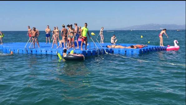 Aquestes plataformes consisteixen en un conjunt d'artefactes modulars i interconnectats, ancorats en el mar a la zona de bany i que els clients utilitzen per al seu entreteniment. Aquestes plataformes es retiraran el 30 de setembre, un cop finalitzi la temporada alta de bany. El funcionament de les plataformes manté el mateix horari de servei de salvament i socorrisme, actualment de 10: 00h a 20: 00h, atès que en les mateixes plataformes existeix també vigilància.