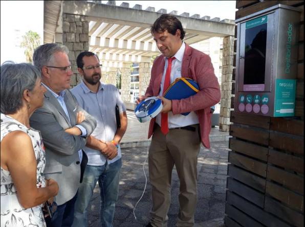 Després de la seva instal·lació es va dur a terme una demostració del seu funcionament per part de l'empresa que ofereix el servei. El punt es troba en un indret amb vídeo vigilància per evitar actes vandàlics a l’aparell i que es connecta de manera automàtica amb el telèfon d’emergències 112 i amb policia local per tal d’actuar de la manera més ràpida en cas d’aturada cardiorespiratòria.