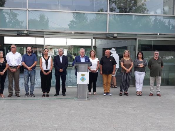 Tant polítics com treballadors de la casa i altres ciutadans s’han volgut sumar a l’emotiu record del que va passar el 17 i 18 d’agost de 2017. L’alcalde Pere Granados ha estat l’encarregat de llegir el manifest en el que es parla de que “ els ciutadans de Catalunya, d’Espanya i Europa van ser testimonis dels cruents atemptats perpetrats per Estat Islàmic a la Rambla de Barcelona i al Passeig Marítim de Cambrils, que van provocar 16 víctimes mortals i més d’un centenar de ferits. La resposta cívica, ferma i pacífica de la ciutadania van ser el millor baluard de defensa de la nostra convivència democràtica i la millor manifestació de la nostra ferma condemna de l’atemptat. Quan es compleix un any d’aquest execrable acte terrorista volem recordar i homenatjar a les víctimes i reiterar el suport a tots els familiars i amics i compartir amb ells un compromís indestructible de defensa dels valors democràtics que guien la societat catalana”. El batlle, ha continuat la seva lectura tot recordant que “un dels pilars fonamentals de les societats democràtiques i civilitzades és que sota cap concepte es pot atemptar contra la vida humana, en nom de res i de ningú”.