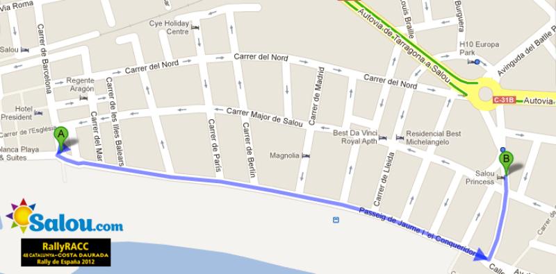 Salou. Costa Daurada. Quan ja només queden tres proves perquè finalitzi el Campionat del Món de Ral·lis 2012 (les proves francesa, anglesa i la que es disputarà del 8 al 11 de novembre a la Costa Daurada) Sébastien Loeb encapçala amb autoritat la classificació de pilots i aquest proper cap de setmana, a la prova gala, pot aconseguir el seu enèsim campionat. Des del 2004 que el pilot francès no para de guanyar en aquesta modalitat automobilística. Per tant, i si no hi ha un daltabaix, el millor pilot de ral·lis del segle XXl vindrà a Salou a festejar el seu setè Campionat del Món. Última prova de Loeb a la Costa Daurada? L'any que ve Sébastien Loeb no disputarà totes les proves, després de debutar l'any 1995 es dosificarà, i tot i que encara no es saben les proves que competirà i les que no, tot indica que la darrera prova del campió francès en el proper campionat serà la que tindrà lloc al seu país. Per tant, el proper campionat RACC Ral·li Catalunya – Costa Daurada podria ser el darrer que disputes el llegendari pilot francès. Un altre al·licient per venir a Salou a veure el ral·li d'enguany i potser la darrera oportunitat de gaudir en directe d'un dels millors pilots de tots els temps: Sébastien Loeb Per altra banda, el millor pilot de la Península, Dani Sordo, vindrà a Salou a culminar un final de campionat brillant. En les dues darreres curses, el pilot asturià ha pujat al podi. Sordo ha fet progressar el seu Mini i vindrà a la Costa Daurada com un dels favorits. Classificació provisional del Campionat del Món de Rally de pilots i marques     La gran novetat d'enguany serà la prova de circuit urbà pel centre de Salou, la capital de la Costa Daurada no només serà el centre neuràlgic dels mecànics i constructors sinó que acollirà la competició de divendres a la tarda amb un recorregut de dos quilòmetres de distància que passarà per una de les artèries del municipi. El traçat urbà és espectacular: el punt de sortida serà l'Espigó del Moll, després els cotxes agafaran velocitat en la recta del Passeig Jaume I i la meta estarà situada a l'Avinguda Andorra de Salou. Circuit urbà pel centre de Salou (mapa)