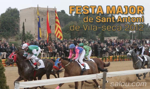 Festa Major d’Hivern Sant Antoni 2012, Vila-seca Divendres 13 de gener 19.45h Al Castell de Vila-seca (Carrer del Comte de Sicart, 67) Concentració del Seguici Tradicional amb el Ball de Diables de Vila-seca, els Trabucaires del Comú, els Capgrossos de Vila-seca, els Gegants i Grallers de Vila-seca, el Ball del Patufet, el Ball de Bastons, el Ball de Cercolets, el Ball de Prims i la Cobla de Ministrers del Comú. 20.00h Des del Castell de Vila-seca. Cercavila del Seguici Tradicional. Itinerari: Carrer del Comte de Sicart, plaça de Voltes, carrer Major, plaça de l’Església, carrer de Sant Antoni, carrer de Joan Salvadó i Voltas, avinguda de la Verge de Montserrat, carrer de la Riera, avinguda de la Generalitat, carrer de Salvador Espriu i plaça de Frederic Mompou. 21.00h A l’Auditori Josep Carreras (Plaça de Frederic Mompou, 1). Pregó de Festa Major a càrrec del Dr. Ramon Gomis de Barbarà, endocrinòleg i escriptor. 21.30h Concert. A càrrec del Cor Mixt de Vila-seca Director: Xavier Pastrana. 22.00h A la Societat Las Vegas (Plaça de l’Església, 10). Monòlegs. Amb Sergio Artitriste 22.30h A l’Envelat (Via Màxima – Plaça d’Alexandre Fleming). Ball de la Festa dels Majors. Amb l’orquestra Parfills i música de les darreres dècades del segle XX amb Remember Sessions i la Carpa Música i gresca fins a les 4 de la matinada Preu 5 €, a partir dels 13 anys. Dissabte 14 de gener 10.30h Al Parc de la Torre d’en Dolça (Raval de la Mar) Gran Festa Hípica Curses de rucs, passejades amb ponis i cavalls Tallers didàctics. Inflables cortesia de la Societat Las Vegas. 13.00h A la plaça de Voltes Cercavila del vermut Amb la xaranga Band Tocats. Final a la plaça de l’Església. 19.30h A la plaça de Voltes Ball de Sant Miquel amb el Ball de Diables de Vila-seca. 20.30h A la plaça de Voltes Concentració de les colles de Diables del Correfoc amb el Ball de Diables de Vila-seca, els Bruixots d’Alcover, Ball de Diables d’Alforja i el Ball de Diables de les Borges del Camp. 20.30h A la plaça de Voltes Sortida del Correfoc Recorregut: Pl. de Voltes, c. de Sant Josep, c. del Patró, c. de la Verge de la Pineda, c. dels Ferrers, c. de Sant Antoni, c. de les Creus, c. del Pou, pl. de Voltes, c. Major i pl. de l’Església. 21.30h A la plaça de l’Església La Plaça del Foc Encesa final i conjunta de totes les colles de Diables. 24.00h A l’Envelat (Via Màxima – Plaça d’Alexandre Fleming) Gran Ball de Festa Major Amenitzat per l’orquestra La Dama Música de sempre i d’ara fins a 2/4 de 6 de la matinada i la Carpa Música i gresca fins a les 4 de la matinada. Preu 5 €, a partir dels 13 anys. Diumenge 15 de gener 11.00h Al Parc de la Torre d’en Dolça (Raval de la Mar). Parades d’Artesans. 12.00h Al Circuit Hípic de la Torre d’en Dolça (Raval de la Mar) Tradicional Cós de Sant Antoni Element Festiu Tradicional d’Interès Nacional 1a. Cursa. Premi Patronat Municipal de Turisme de Vila-seca. Galop, cavalls pura sang anglesos – distància 1.700m. 2a. Cursa. Premi “la Caixa”. Galop, cavalls pura sang anglesos – distància 1.700m. 3a. Cursa. Gran premi Ajuntament de Vila-seca. Galop, cavalls pura sang anglesos – distància 2.500m. 17.30h A l’Envelat (Via Màxima – Plaça d’Alexandre Fleming) Ball de Festa Familiar a càrrec de Rovell d’ou la revetlla arriba quan vol!!! un poti-poti de cançons tradicionals, populars versionades a ritmes actuals, versions de temes coneguts, danses i balls de tot tipus, actuals i tradicionals, cançons i músiques ballables, tot pensat perquè tothom hi participi activament, que sigui el públic el protagonista de l’espectacle. 20.00h A l’Auditori Josep Carreras (Plaça de Frederic Mompou, 1) Gran Concert de música italiana amb Ma Carme Duran (soprano), Josep Anton González (tenor) i Marc Torres (piano). Preu 12 € /10 € anticipada.