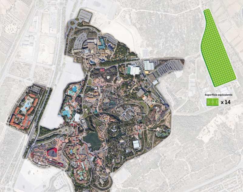 El resort PortAventura World posarà en funcionament aquesta planta la primavera de 2020 amb una potència instal·lada de 8,5MWp, i espera que un terç del seu consum d'electricitat provingui de l'energia solar produïda en aquesta instal·lació. Amb aquest projecte PortAventura espera evitar l'emissió de 4.000 tones de CO2 a l'atmosfera, que equival al CO2 que poden absorbir 930.000 arbres.