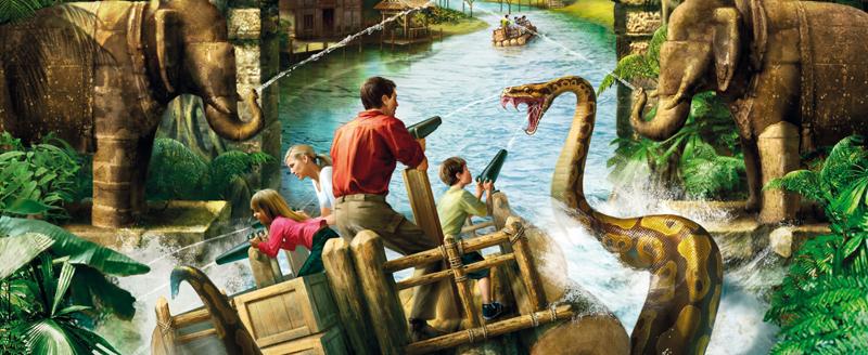 Angkor és una atracció aquàtica d'uns 300 metres de recorregut que els visitants faran en unes embarcacions pneumàtiques des de les quals hauran de defensar-se dels perills de la selva, armats només amb escopetes d'aigua. Angkor: Aventura al regne perdut s'inspira en el temple cambodjà d'Angkor Wat, considerada l'estructura religiosa més gran del món, envoltada de grans selves i declarada el 1992 Patrimoni de la Humanitat.