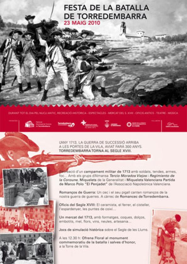 Torredembarra. Costa Dorada. The Department of Trade and Economic Development and the Municipal Tourism organized the third edition of the Feast of the Battle of Torredembarra which will take place this Sunday, May 23, during the whole day on the streets of the old. This is a historical recreation, cultural, recreational and festive this feat of arms Torredembarra happened in the July 16, 1713, as part of the War of Succession. That day, in the Tower, they faced a platoon of volunteers led by Rafael Nebot Catalan (500 cavalry and 750 riflemen and infantry) and an army detachment commanded by Brigadier Bourbon Diego González, with three companies of grenadiers, 300 soldiers cavalry and more than 1,000 soldiers. The battle ended in a defeat of General Nebot. Main activities Recreation history of the battle. Recreation of a 1713 military camp with soldiers, tents, weapons, fire ... With groups of Almansa Purple Third Regiment Old and Coroune, Miquelets of Catalonia and Valencian Item Miquelets Marco Polo "The Penjadet" Napoleonic Association Valenciana. A market in 1713 with cheeses, cakes, sweets, sausages, honey, flowers, wine, wafers, crafts ... Historical simulation games on the Enlightenment. For the first time, attendees may wish to play strategy games simultaneously in the Plaza de la Villa. Of note is the game that reflects what happened on September 11, 1714, all references to Catalan history. Offering floral, at 12.30 h, in the battle memorial located in the Torre de la Vila, and a salute. Romances of war. A blind man and his guide sing ballads of our war of wars. In charge of Romancec Torredembarra. Offices of the eighteenth century. The potter, the blacksmith, basket maker, the espadrille maker, pillow tips ... Objectives of the party The mayor, Daniel Massage, explained that the festival is twofold: the historical memory of events that marked the country's future and now appropriates the highlight of the commemoration of 300th anniversary, and the help commercial revitalization of the municipality with the conclusion of activities that create a suitable framework for Torredembarra is known and valued and become a true engine cultural, tourist and commercial. This line is the recent participation as a guest in Tarragona city DTaP, the Gastronomic Ranxets Spring (carried out until 13 June) or the three editions of the Sea Market this summer. Tardà Pere, enterprise Fairs and Festivals in charge of technical production, said that gambling is still strong by historical recreation and repeat the four groups last year. In addition, nearly doubled the presence of stalls in the market this year come to the eighties. This fact means has expanded the space occupied by the Feast of the Battle.