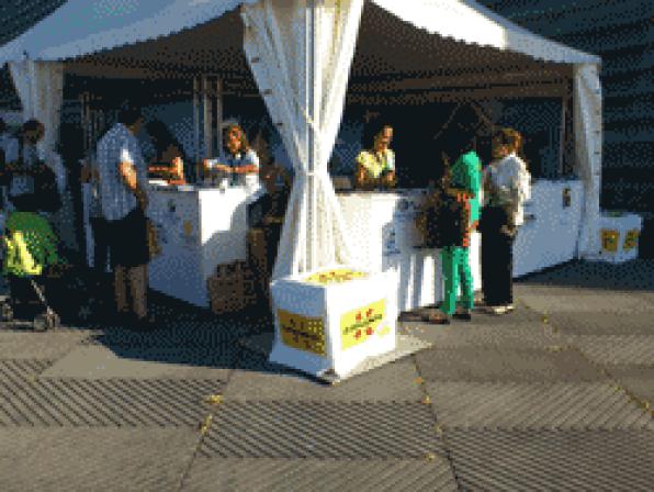 Tarragona. Costa Dorada. 20th July 2012. The Provincial Tourism Board promotes the Costa Dorada Tarragona and Terres de l'Ebre own space on the terrace Kurssal Donostia, in the context of 47ena Jazzaldia Jazz Festival, between 19 and July 23. The promotional event is part of the promotion in the Basque city, organized by the Catalan Agency for Tourism of the Government. The initiative is the leading destinations in Costa Daurada and Terres de l'Ebre. Images of these two territories decorate the dining hall of Catalonia, an area which offer tastings prepared by the restaurant Via Outside the Catalan Centre Donostia, with quality food products in their respective areas. By side of the Costa Dorada, in addition to Tourism Council of Tarragona Province, there are representative of the municipal tourism Calafell Cambrils, Mont-Roig del Camp, Salou, Tarragona and Vendrell, in addition to the Route Cistercian Roman Tarraco and PortAventura. And as the Terres de l'Ebre, in addition to the Provincial Tourist Board, are represented by the municipal tourism office Alcanar and Tourism Department of the bottle. In addition to this promotion and restaurants, four musical groups of the Costa Daurada and Terres de l'Ebre participate in the festival: A Jazz Band Stromboli (Tarragona), G7 Jazz Quartet (Tarragona), David Espinos (Tortosa) and Genis Bagés Trio (ASCO).
