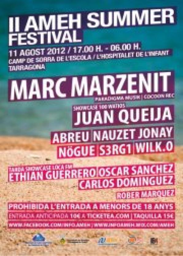 L'Hospitalet de l'Infant. Costa Dorada. This Saturday, August 11, the Association of Electronic Music in Hospitalet de l'Infant (AMEH) has organized with the collaboration of the City of Vandellòs Hospitalet de l'Infant and others the music festival will take place in Summer Ameh field sand the village school (the School Mestral). The festival will begin at five o'clock and will last until dawn. The early entry ticket costs 10 euros and 15 euros worth, with the entry enters a consumisió. ASF will feature performances by various artists: MARC Marzena *** (Musik PARADIGM | COCOON REC) TGN 100 WATIOS *** SHOWCASE *** · JOHN Queijo · Nogué · NAUZET Jonay · ABREU · S3RG1 · WILK.O LOCA FM AFTERNOON SHOWCASE *** *** · ETHIAN GUERRERO · OSCAR SANCHEZ · CARLOS DOMINGUEZ AMEH was born 3 years ago and is now an organization "committed by youth tourism in L'Hospitalet, and for people to enjoy the festival ground," as told by its founders.