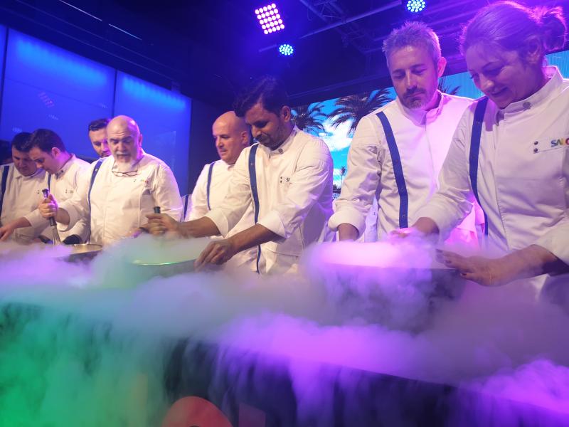 Salou. Costa Dorada. 19 January 2023. With the collaboration of the Associació d'Empresaris d'Hostaleria de Salou (AEH) and the Salou City Council, eight of the most prominent restaurateurs in the capital of the Costa Dorada have delighted those attending the presentation of the Salou Sports Calendar 2023 with a succulent demonstration of his culinary talent, within the framework of the Fitur fair in Madrid.