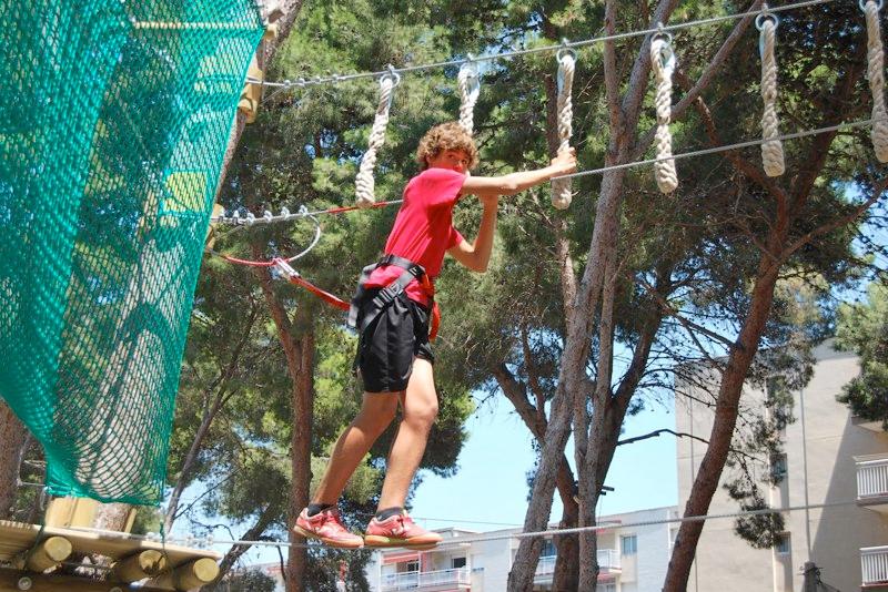 En el parque Bosc Aventura, en pleno centro de Salou (Tarragona), puedes pasear por árboles centenarios en un área completamente diseñada para dar nuevas emociones y disfrutar de la altura con total seguridad, caminar entre los árboles a través de poleas (tirolinas) o puentes de cuerda, luchar con las armas cargadas con bolas de pintura, en grupos de amigos o compañeros de trabajo para la conquista de los objetivos establecidos (teambuilding) o para organizar tu cumpleaños o despedida de soltero/as.