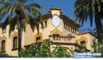 La belleza y equilibrio que transmite este colosal chalet queda realzada por el jardin que se intuye tras los muros de la finca, tras los cuales sobresale un pequeño templo cuya cúpula de mosaicos nos trasladan a la imagen del Parque Güell, con sus decoraciones a base de fragmentos de cerámica de color. El Reloj de sol que preside el chaflán, formado también con piezas de cerámica, contiene un pensamiento escrito con caligrafía neogótica y que reza así: “Aprovecha el tiempo que pasa y no vuelve…”.