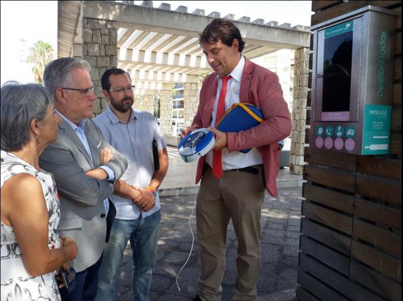 Tras su instalación se llevó a cabo una demostración de su funcionamiento por parte de la empresa que ofrece el servicio. El punto se encuentra en un lugar con vídeo vigilancia para evitar actos vandálicos en el aparato y que se conecta de forma automática con el teléfono de emergencias 112 y con policía local para actuar de la manera más rápida en caso de parada cardiorrespiratoria.