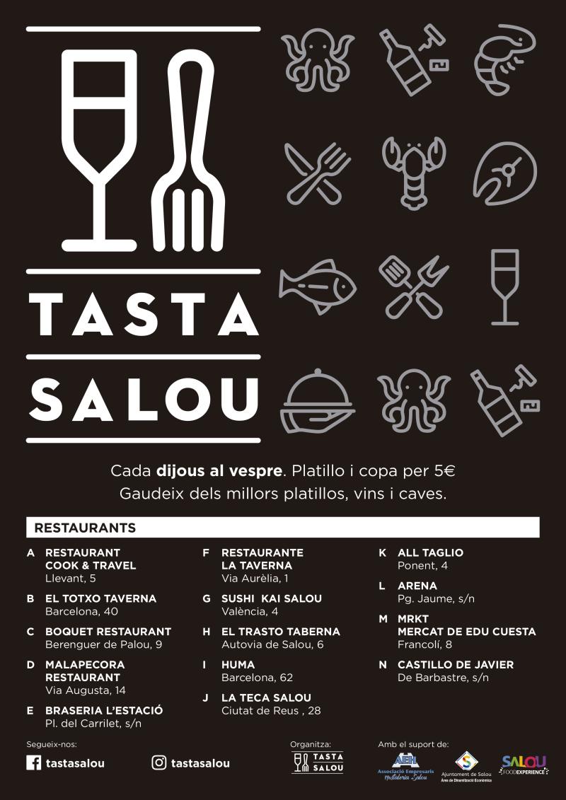 La Asociación de Empresarios de Hostelería (AEH) de Salou, en colaboración con el Ayuntamiento de Salou y bajo el patrocinio de Raventós Codorniu, retoma la ruta gastronómica 'Tasta Salou', que volverá al municipio el 20 de mayo de 2021, y hasta el 10 de junio de 2021, dado que las medidas sanitarias ya permiten la apertura de la restauración hasta las 23h de la noche, a raíz del fin del Estado de alarma.