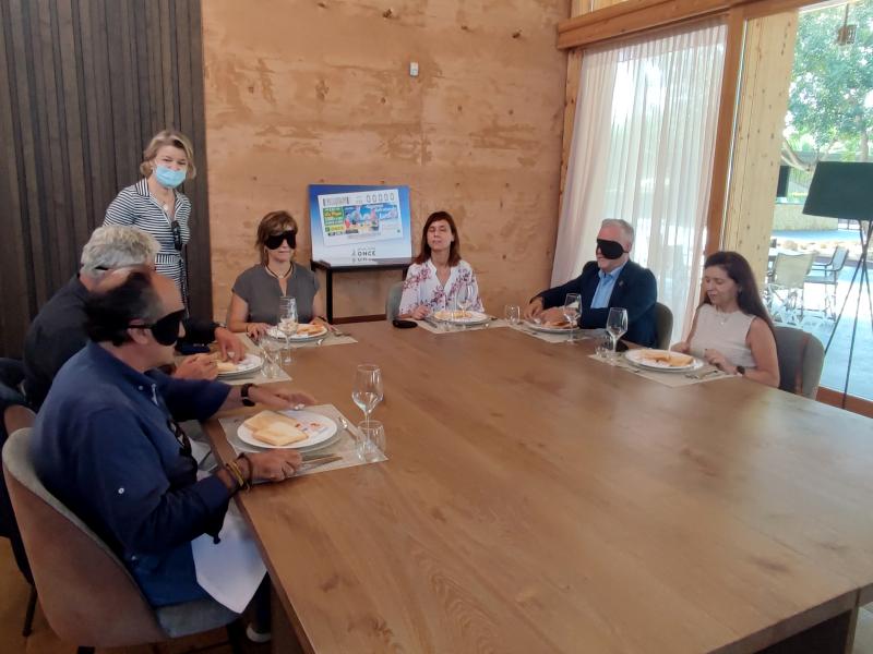 Con motivo de la presentación la ONCE propuso un desayuno a ciegas en el que han participado Berta Cabré, presidenta de la Federació Empresarial d'Hostaleria i Turisme de la província de Tarragona (FEHT), Xavier Guardià, director de relaciones institucionales de la FEHT, Xavier Blasi, del Camping & Resort Sangulí, Pere Granados, alcalde de Salou yi Raquel Saavedra i Rafaela Pérez, directora de la ONCE en Tarragona y de la ONCE en Catalunya, respectivamente.